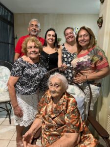 Vovó, guardarei as lembranças de tantos momentos reunidos em família, do quanto a senhora é o nosso exemplo de mulher forte e que ama todos reunidos. Seu legado ficará em nós. Deixo um grande abraço para todos da família, queria estar com vocês nesse momento.